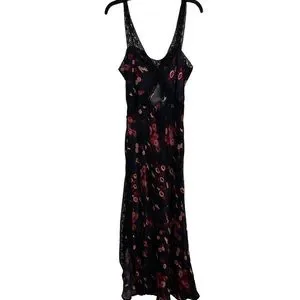 New Anthropologie Black Pink Floral Cayman Silk Maxi Dress By Maev The Mustard Dandelion